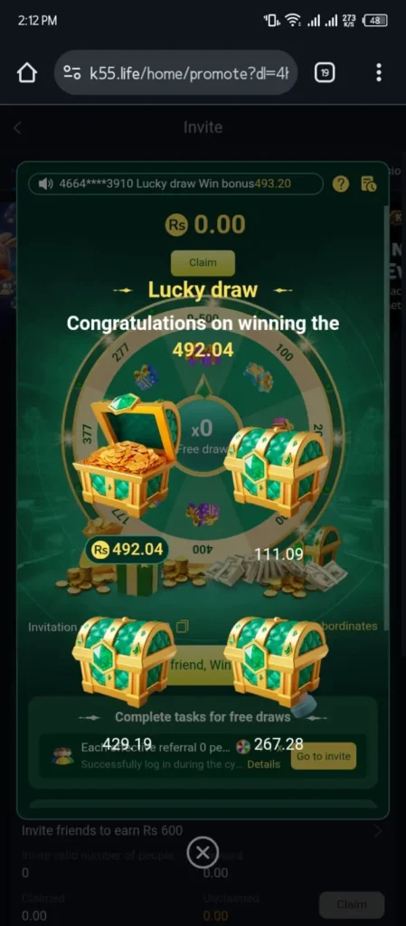 The referral system in K55 iOS allows users to invite friends. From what I observed, this feature is easy to understand. Users get rewards when referrals join and play. It encourages social sharing. This feature works well for active users.